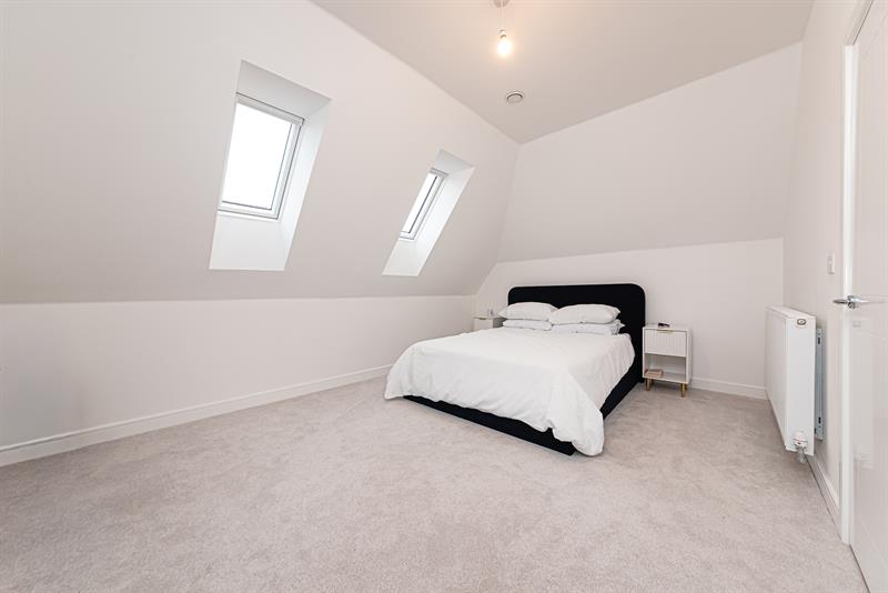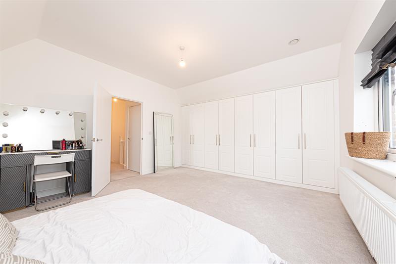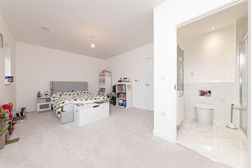 On the first floor, there are two generous double bedrooms with the principal bedroom featuring an en-suite shower room. Both bedrooms benefit from built-in wardrobes.