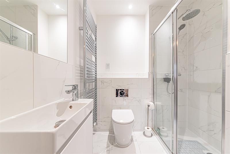 The second floor comprises two further double bedrooms, one with built-in wardrobes and a contemporary family shower room.